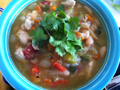 - Add bell peppers and cook, uncovered, for 10 minutes, stirring occasionally. Ladle into bowls and sprinkle with cilantro.