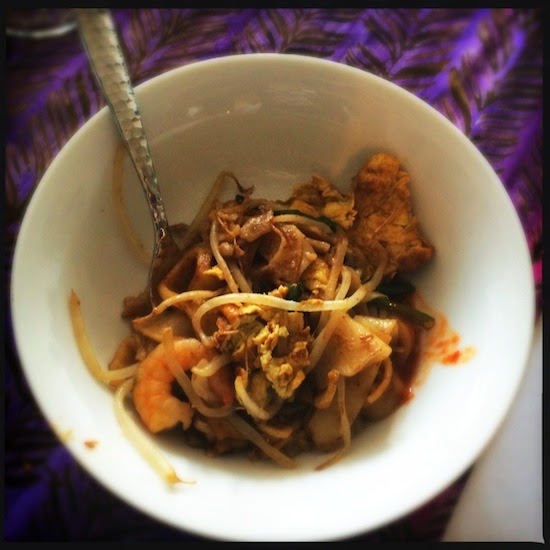 Char Kway Teow (wok-fried fresh rice noodles with shrimp, chives, bean sprouts and belachan):